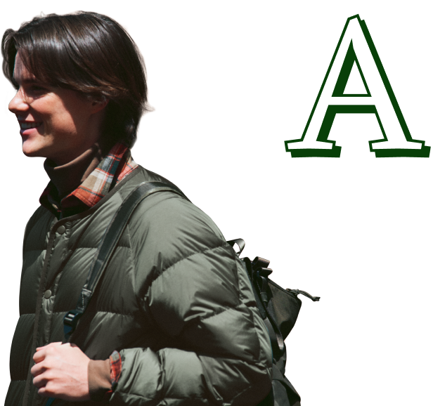 A healthy, vigorous college lifestyle represents an ideal. The student athletes at Harvard University, featured on p.56, are brimming with this sort of vitality. This stadium jacket, a prime example of the influence of sports on fashion, is a perfect choice for fall and winter. The knit collar and cuffs and snap button closure are classic details, while the sleeves make use of innovative PU leather for a lighter fit.