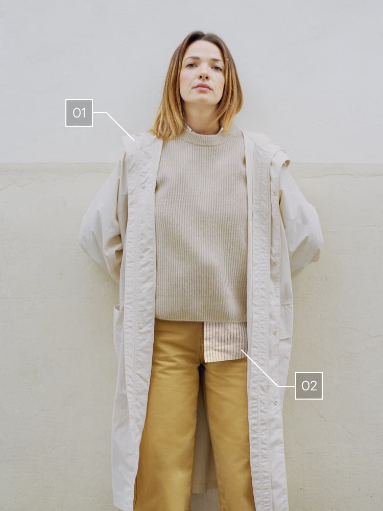 “I like expressive clothing that moves when you move,” says Emma. With ample volume, this coat has a design she says is close to her ideal.