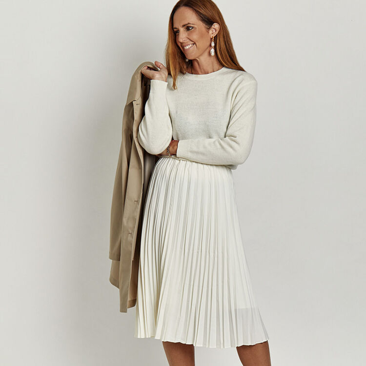 A crew neck knit would have the be the easiest style to integrate into your wardrobe. And I love the simplicity of a style like this, as it can be worn in so many ways. As it gets cold, this style will be the ‘basic’ of your outfits and it’s perfect to wear for work. Worn colour blocked with a pleated skirt or tailored pant, looks very chic and work wear appropriate.