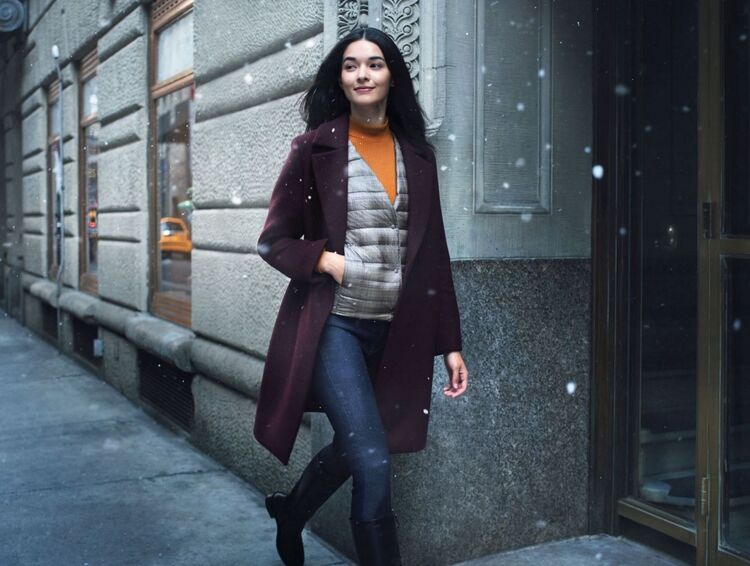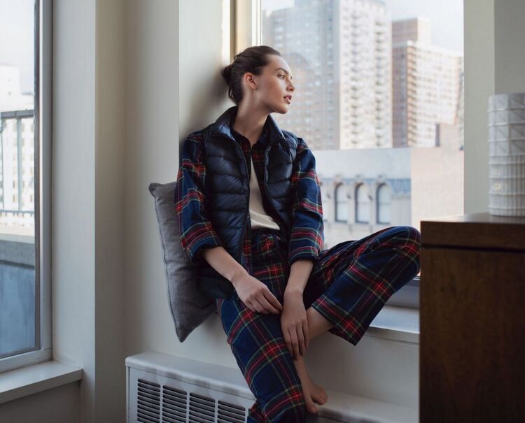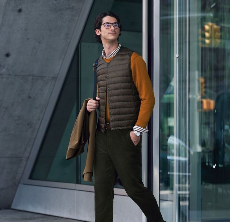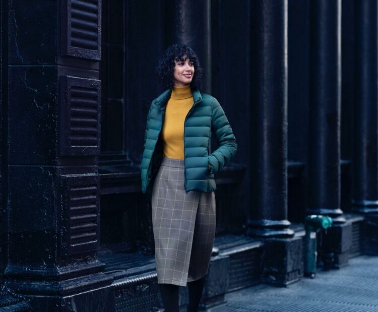The ideal business layer, the Ultra Light Down Compact Jacket, can be worn solo as a cardigan or underneath a lighter jacket to add warmth.