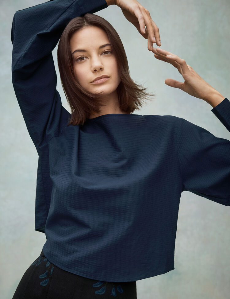 Cotton Dobby Long Sleeve Blouse