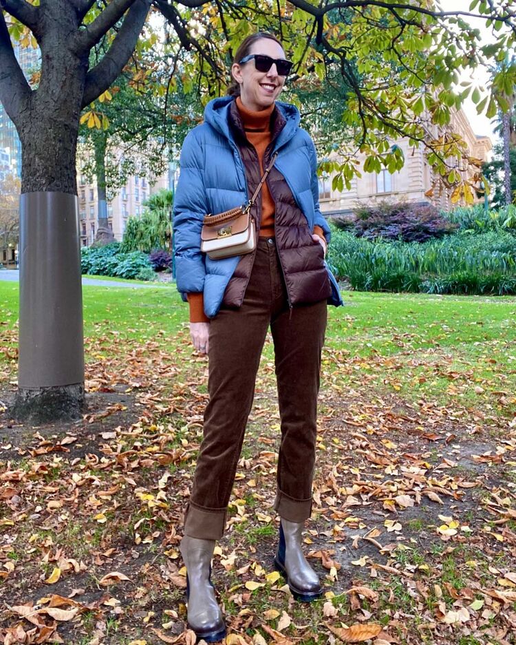 @styledbysally wears the Ultra Light Down Vest and the Ultra Light Down Parka.