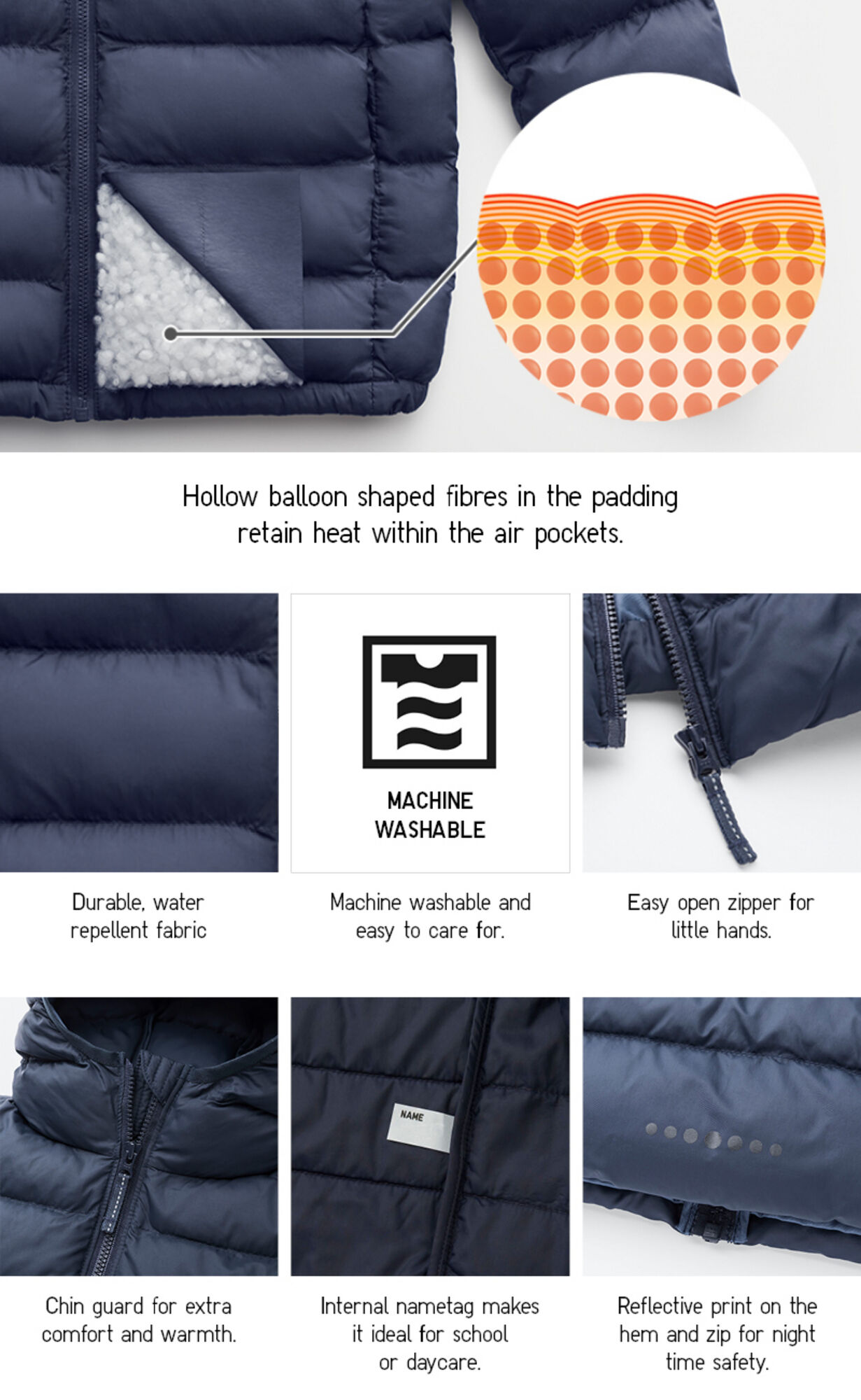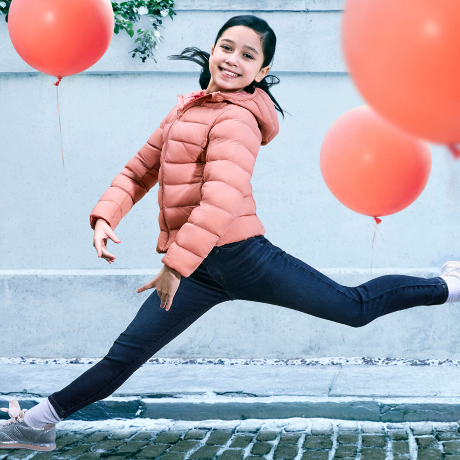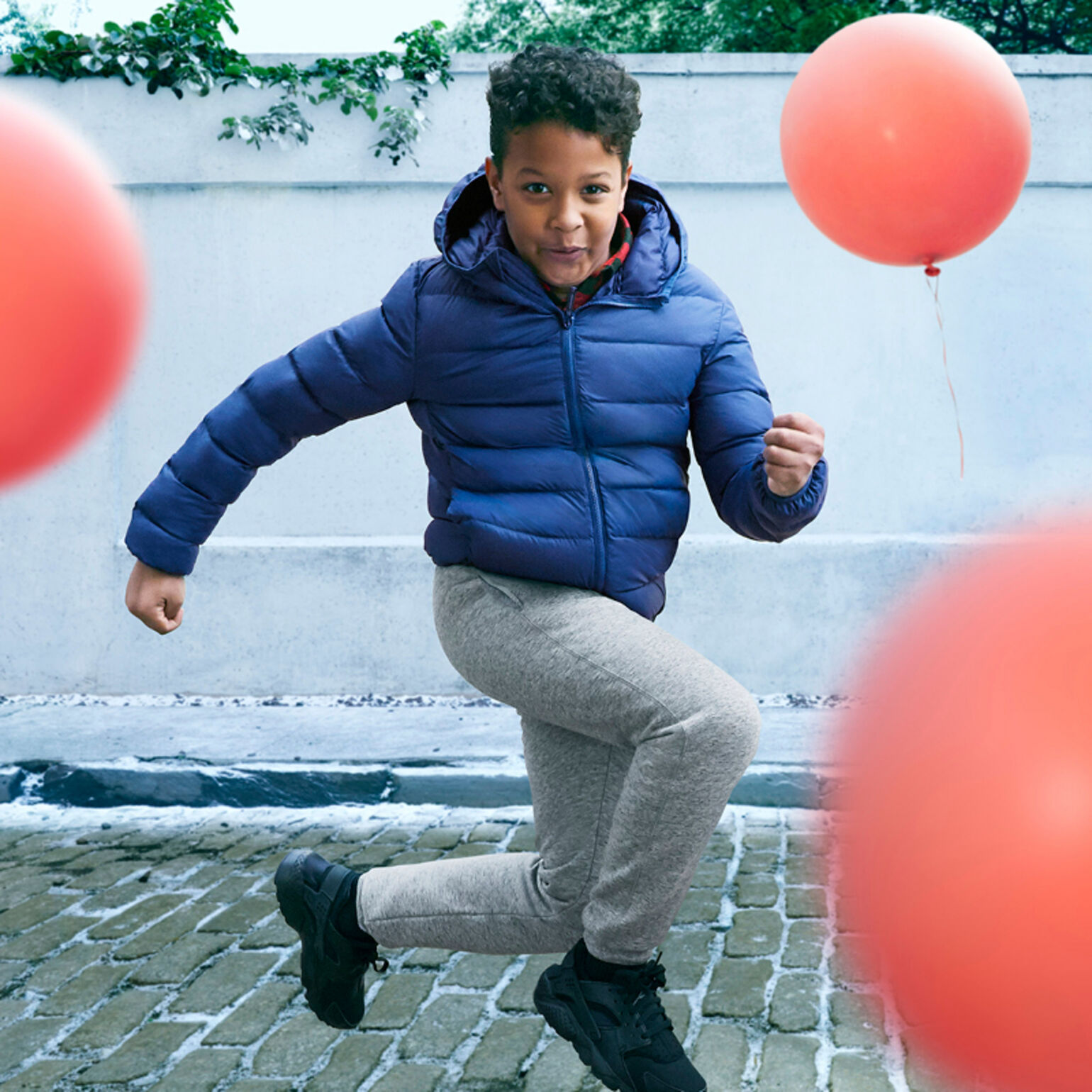 Our lightweight yet super-warm padded jacket is an outdoor essential. Pockets lined with soft tricot fabric keep little hands warm even without gloves.
