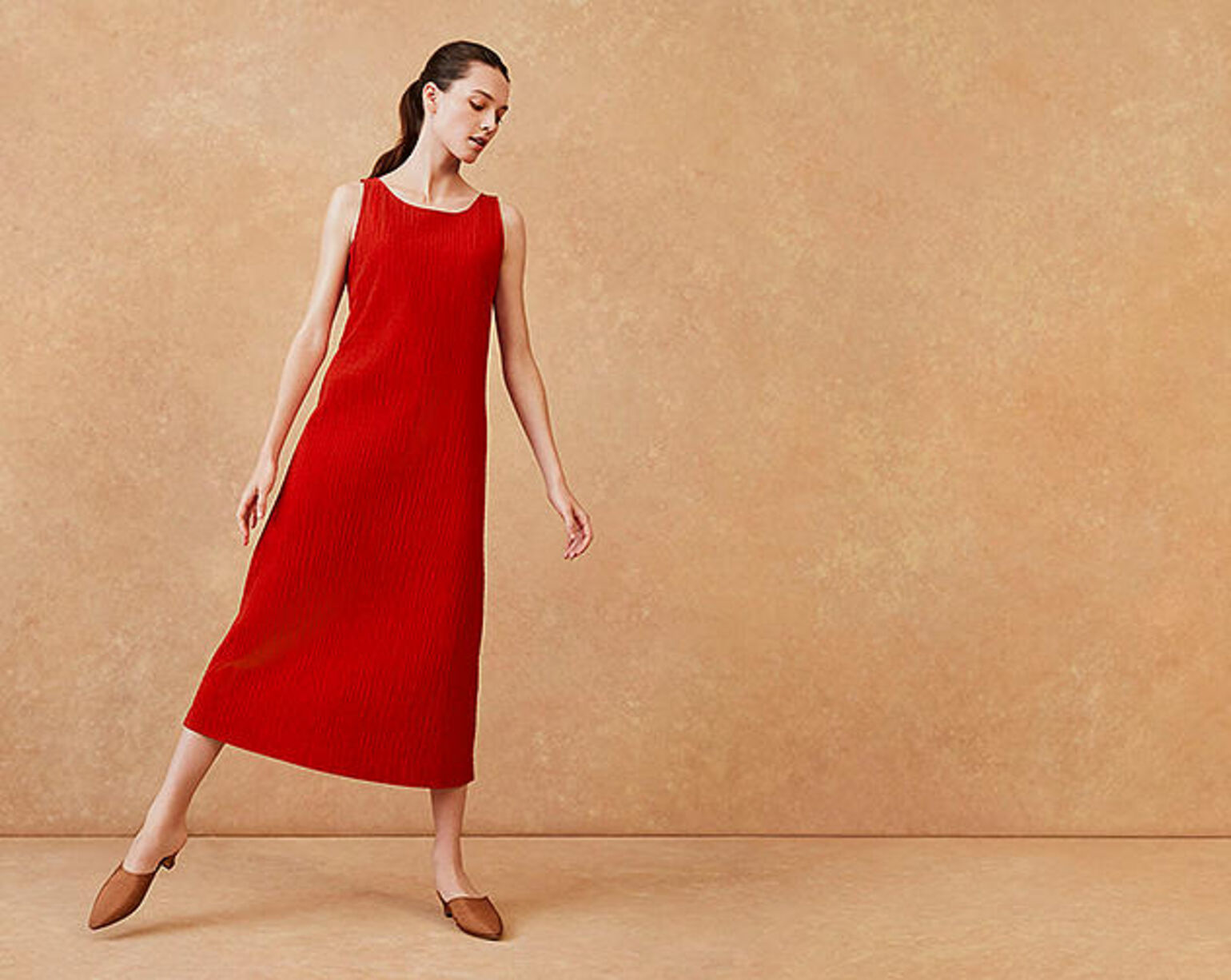 Wearing: Shirring Sleeveless Long Dress