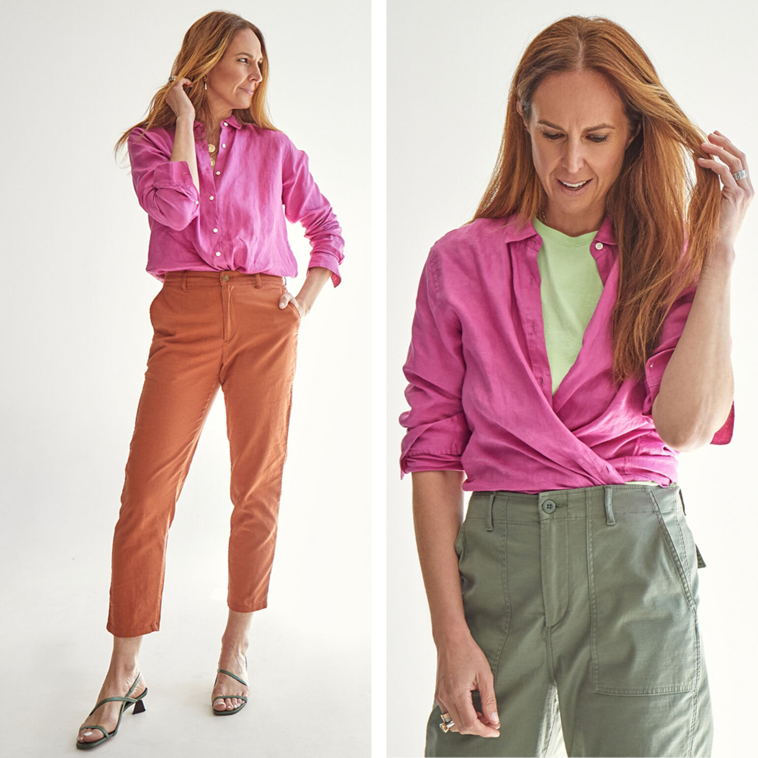 There is something very classic and beautiful about a linen shirt, but as most of us probably already own one in white or natural - with all the stunning new colour pallets available, now is the time to add some personality into your outfits. It’s all about wearing colour in a new way and styling colour combinations you wouldn’t normally put together, such as brights with muted tones.