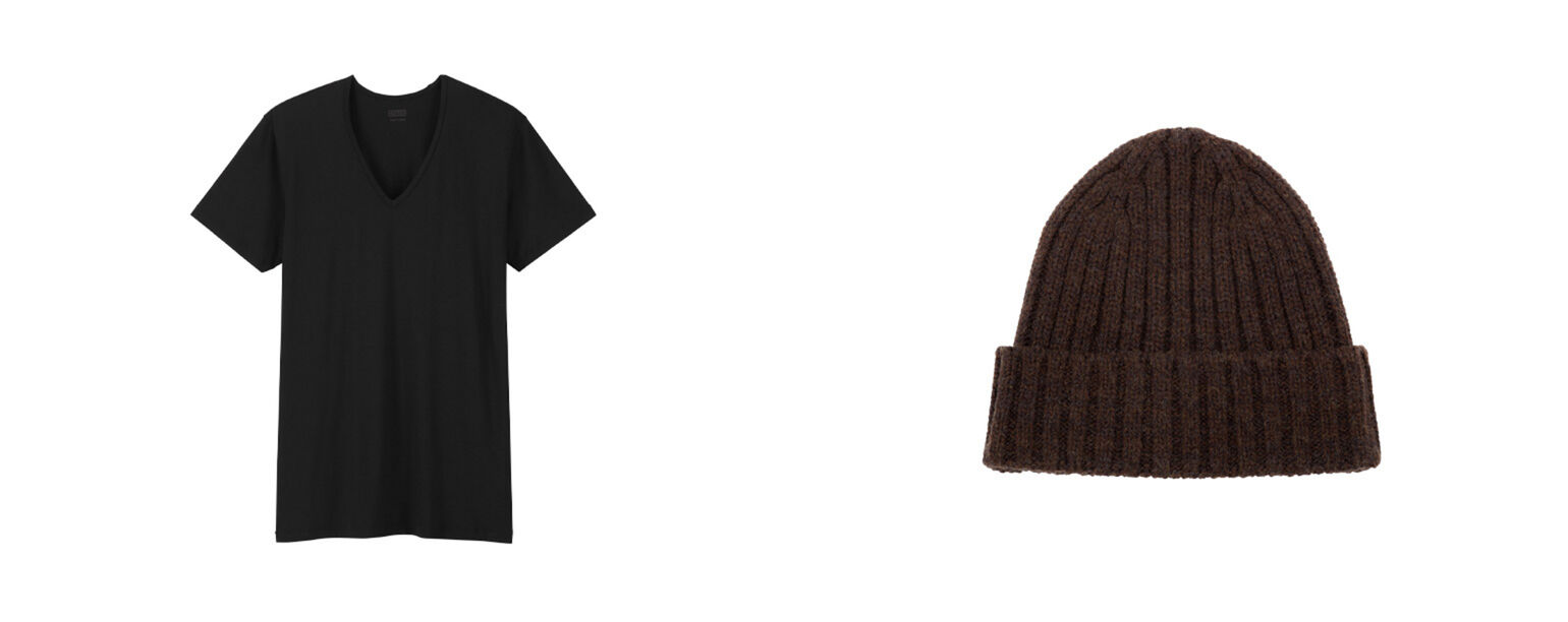 Dale wears HEATTECH Knitted Cap and HEATTECH V Neck T-Shirt (Short Sleeve) under a Flannel Checked Long Sleeve Shirt.