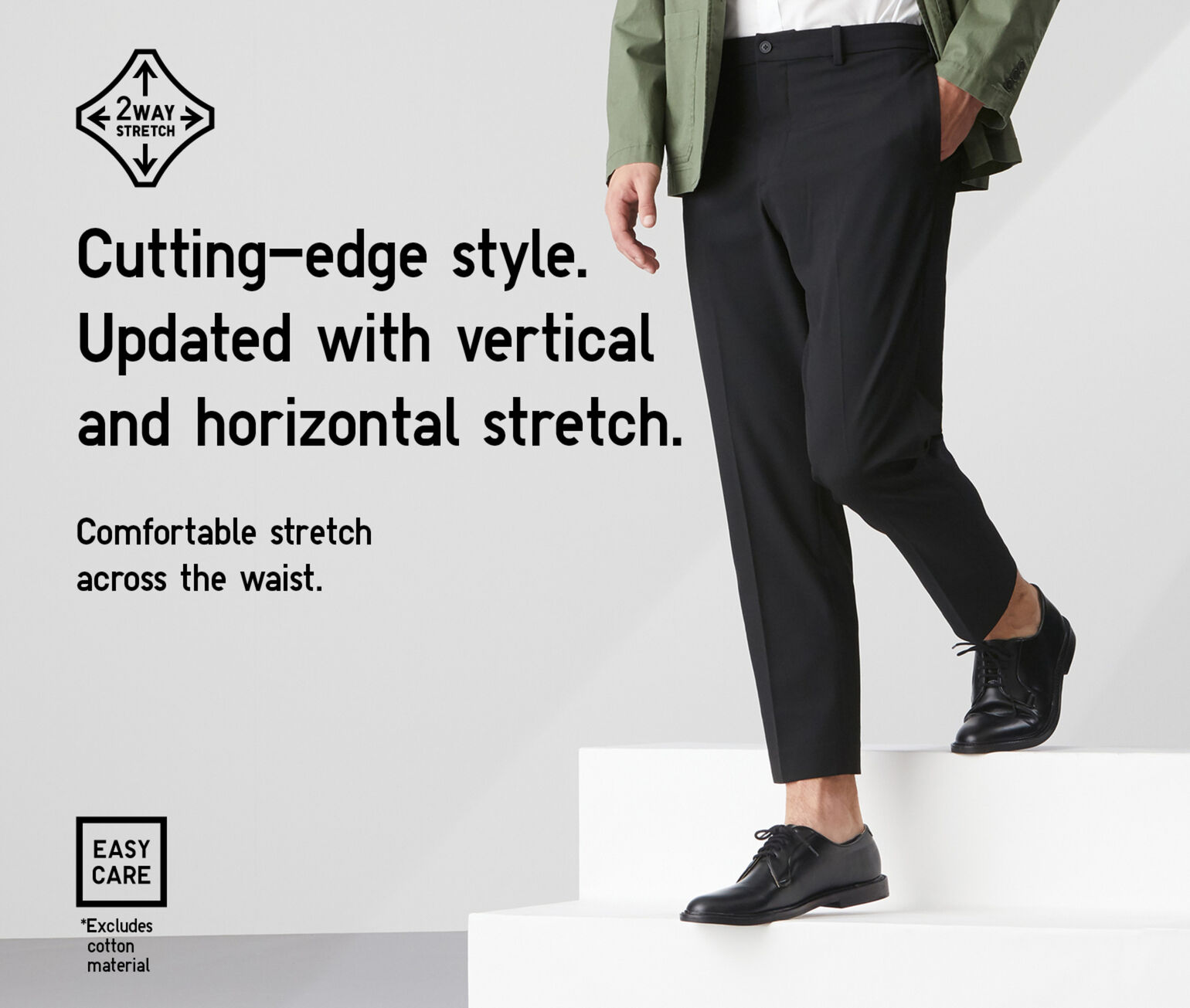 At UNIQLO, our design process starts with innovation. We wanted to create comfortable dress pants that allow for easy movement.