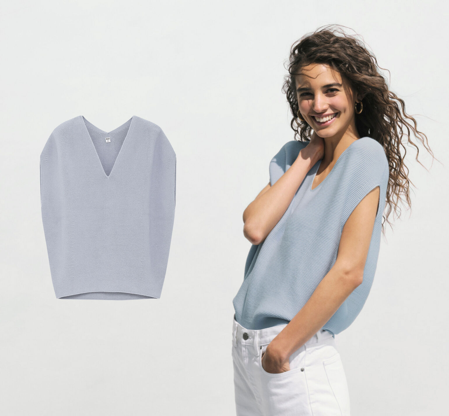 Wearing: 3D Cotton V Neck Pleated Sweater