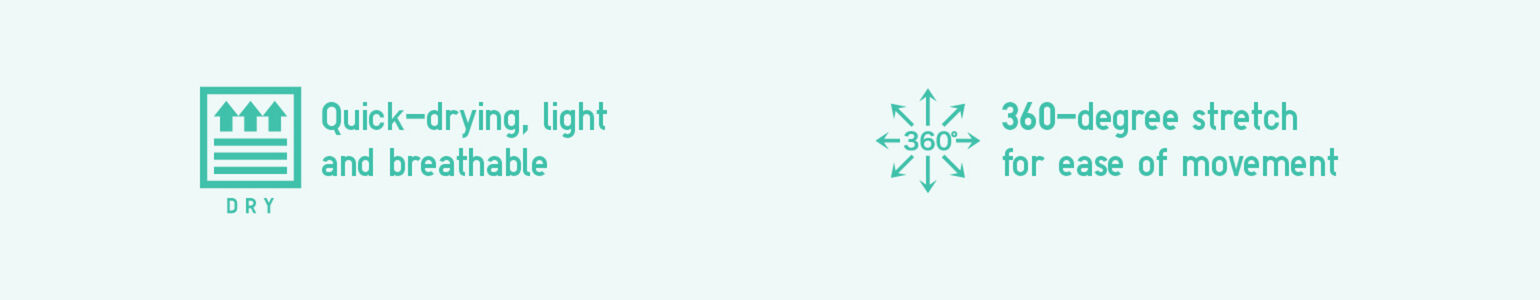 Ultra quick-drying performance fabric, as worn by elite athletes. Instantly wicks away moisture to keep you feeling fresh.