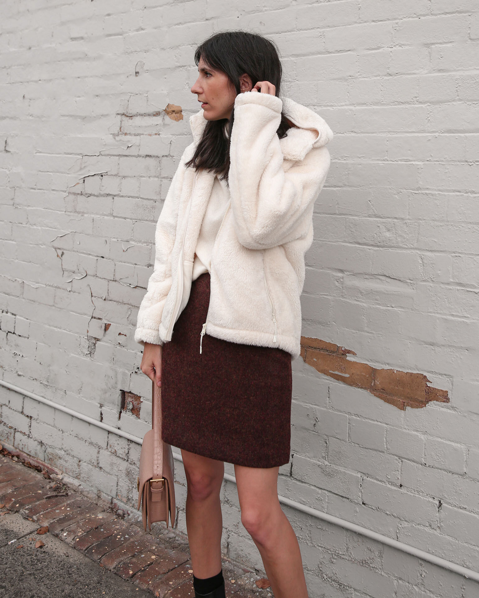 @mademoisellejaime wears the Windproof Fluffy Yarn Hoodie