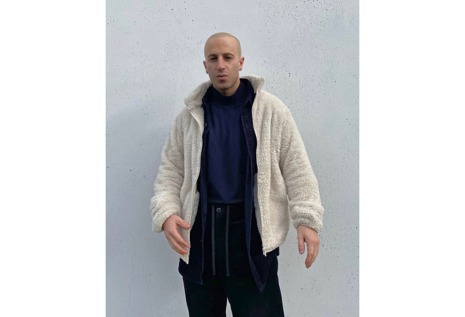 @jvpmelbourne wears the Fluffy Yarn Fleece Full-Zip Jacket
