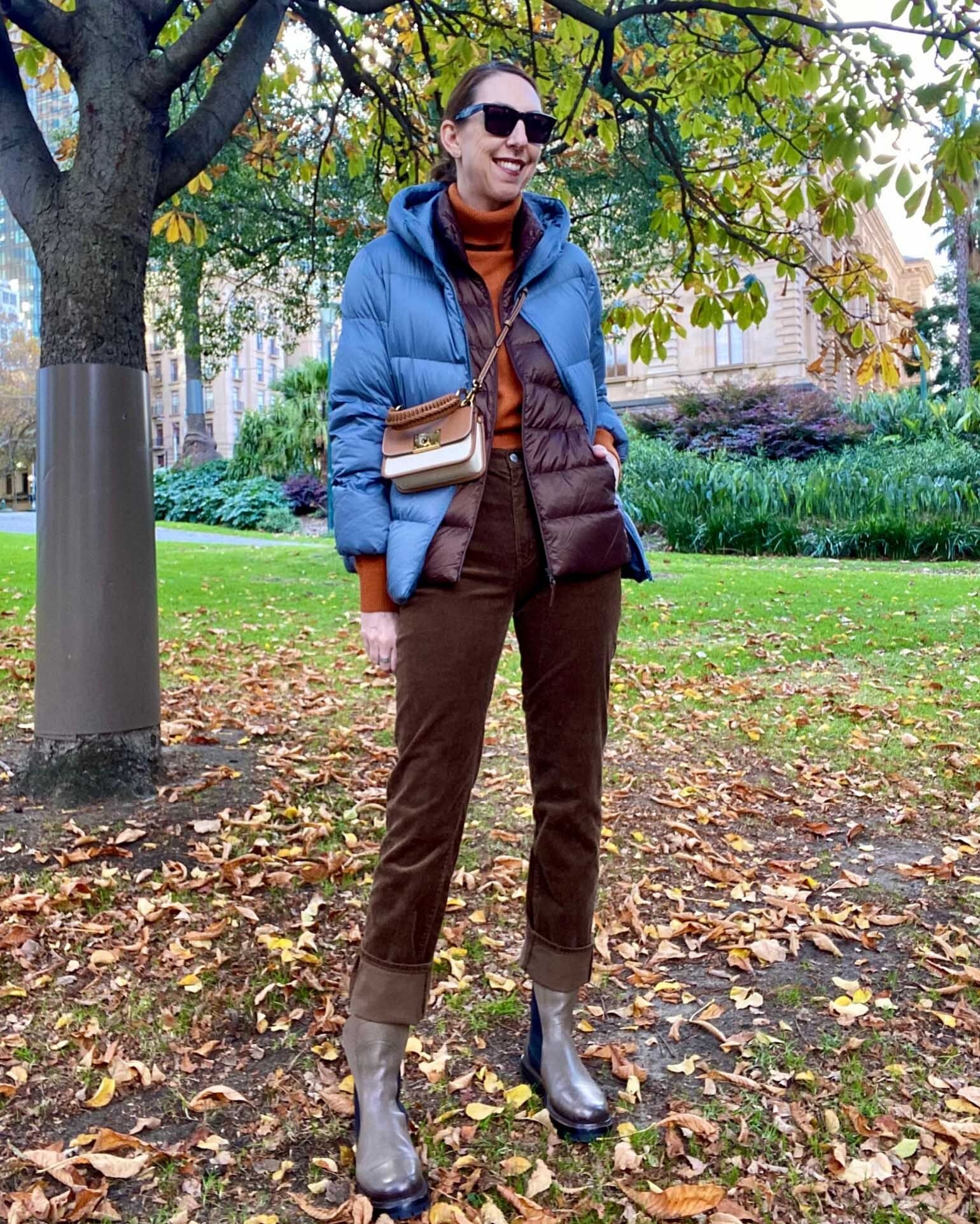 @styledbysally wears the Ultra Light Down Vest and the Ultra Light Down Parka.