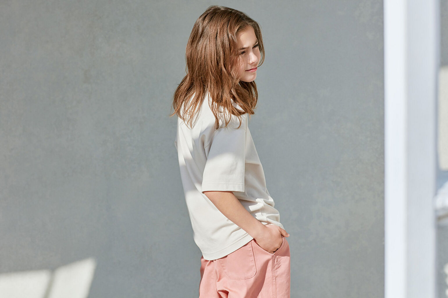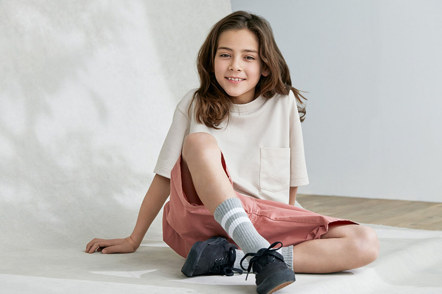The long-awaited, new AIRism Cotton T-Shirt for kids feels silky and has quick-drying functionality to keep them cool and comfortable even with they sweat. The large pocket serves as a functional detail and casual accent.