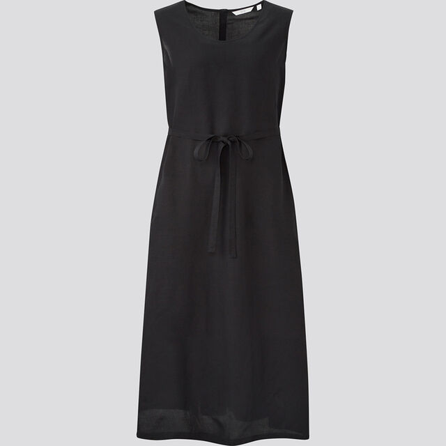 LINEN BLEND A-LINE SLEEVELESS LONG DRESS