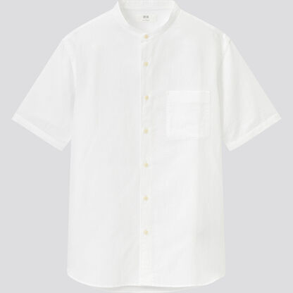 LINEN COTTON STAND COLLAR SHORT SLEEVED SHIRT