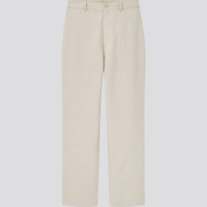 LINEN BLEND RELAXED FIT STRAIGHT LEG TROUSERS