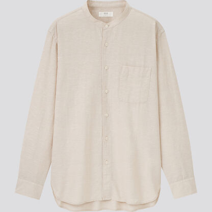 LINEN COTTON STAND COLLAR LONG SLEEVE SHIRT