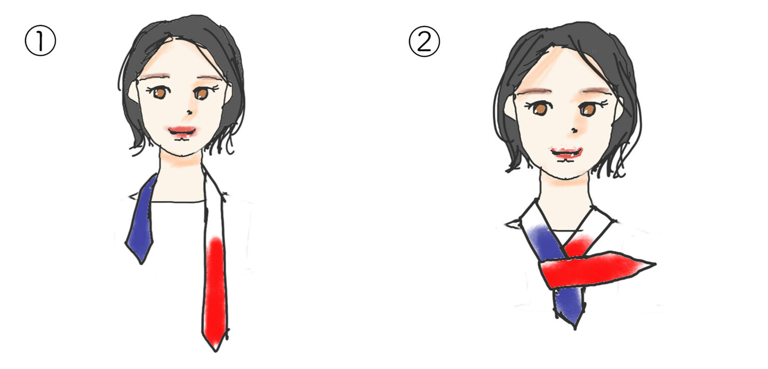 ② Tie the ends at your nape.