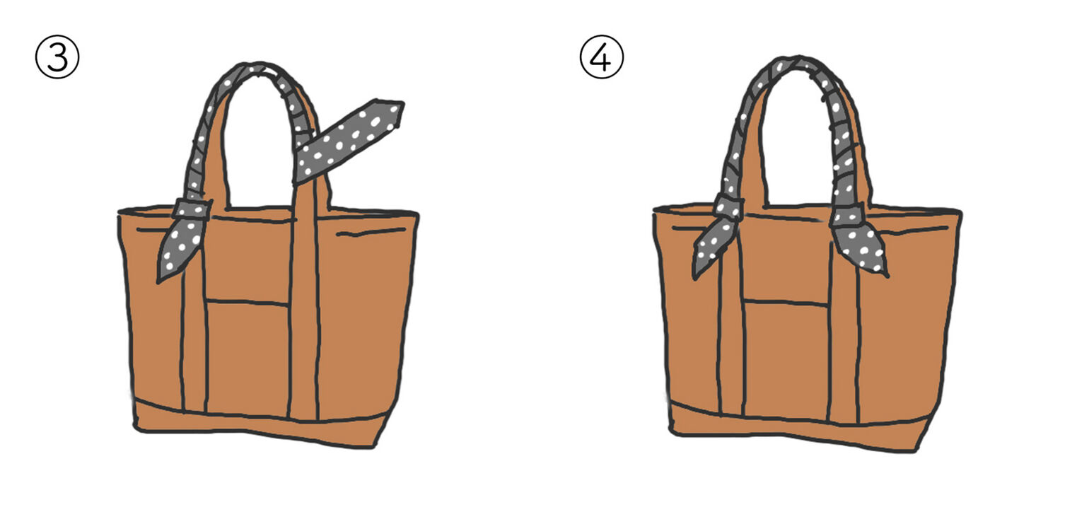 Just wrapping a scarf can instantly breathe new life into an existing bag. These are two popular styles.