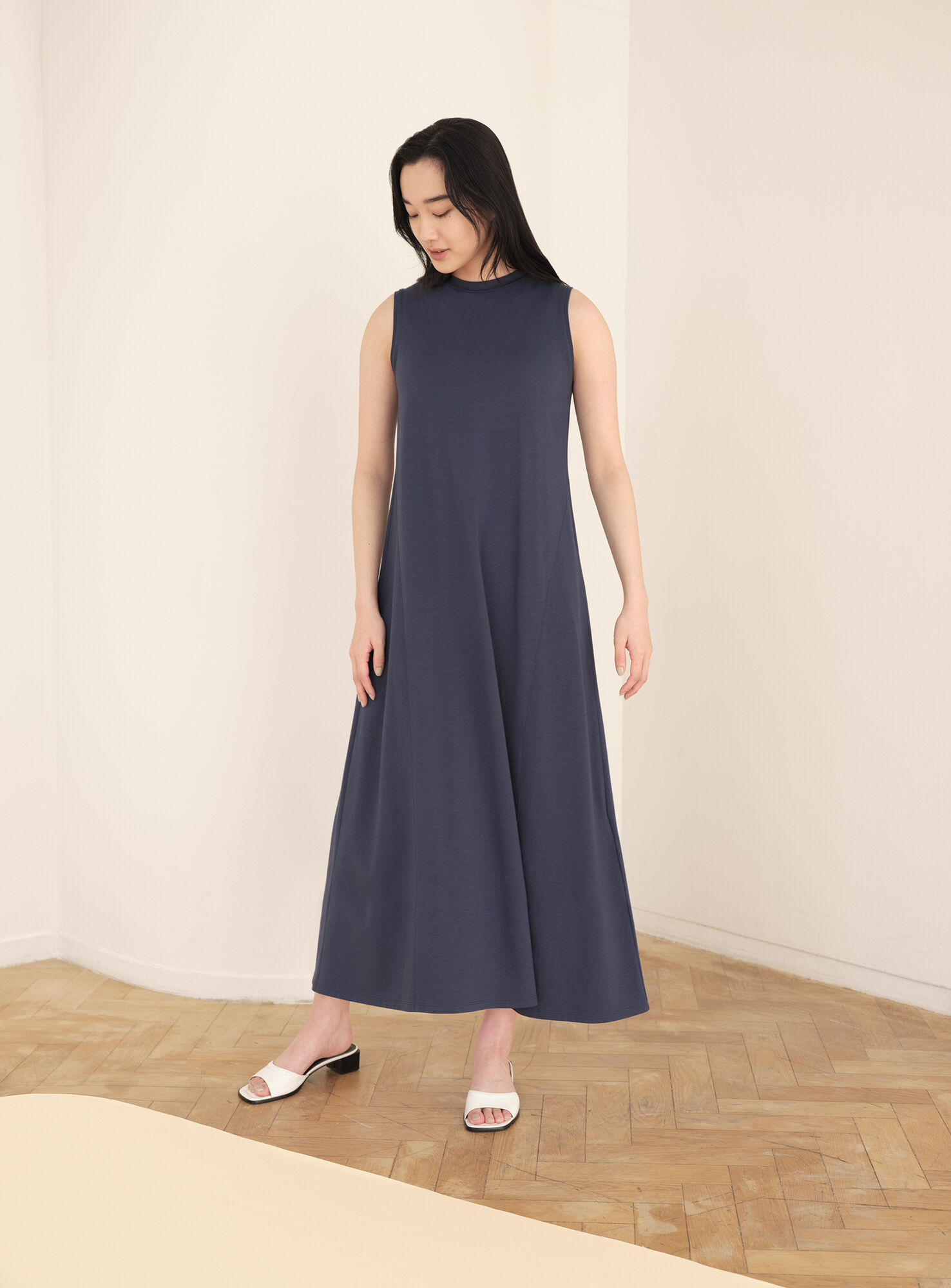 Soft rayon cotton combined with the long length and flared silhouette creates an elegant dress, perfect for the Spring season. Layer with the Hana Tajima AIRism Long Sleeve T-Shirt for a stylish contrast on the cooler days.