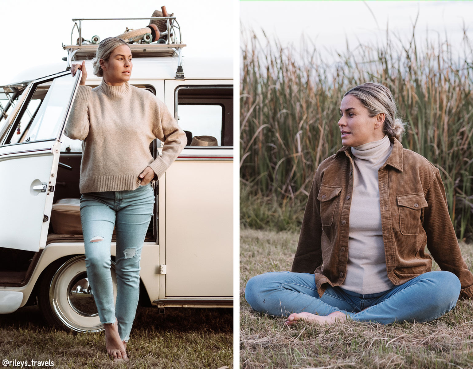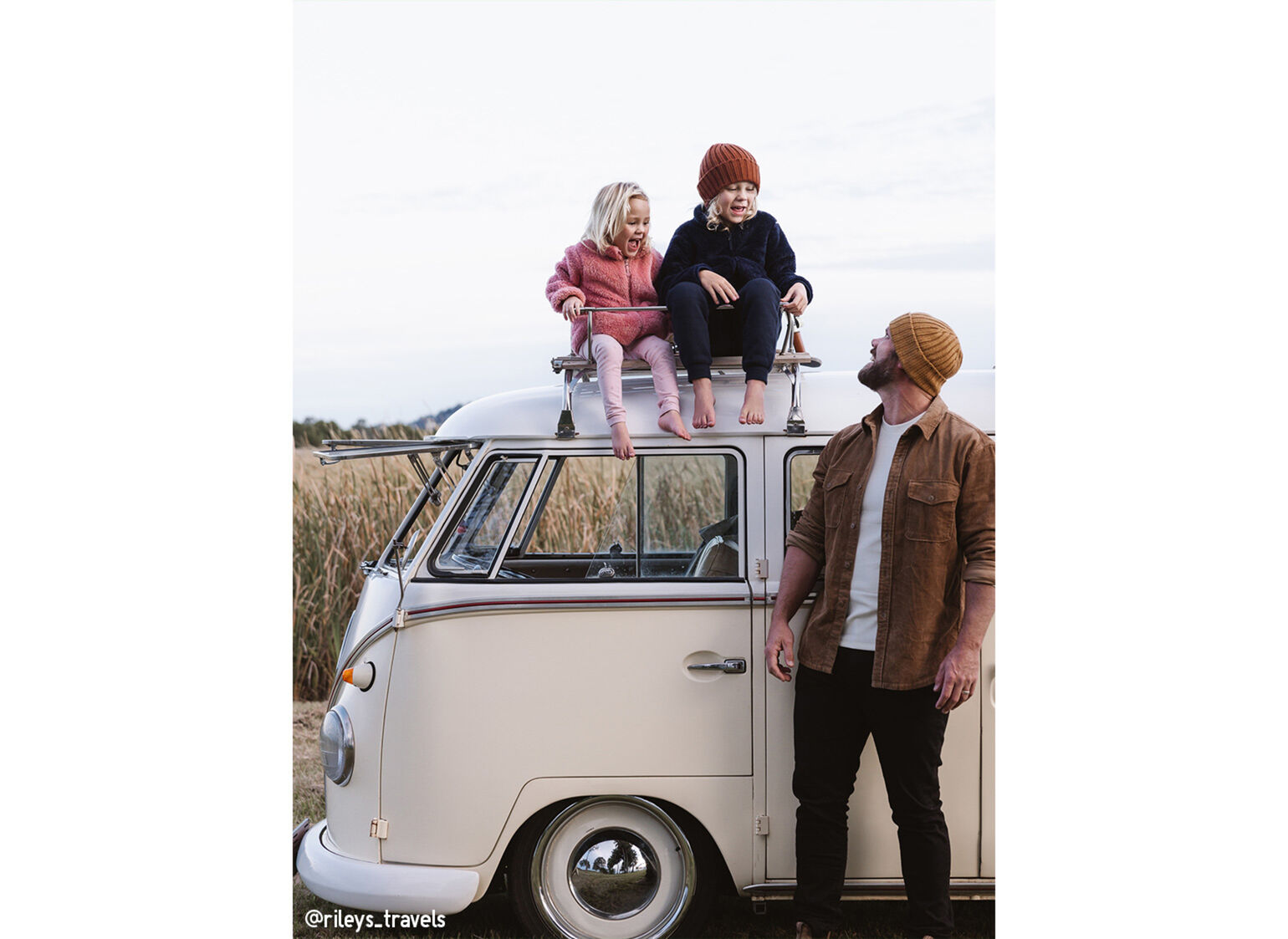 Kirianna, Lockie (@rileys_travels) and their two children are currently on their second lap of Australia in their 1962 Combi. Their nomadic lifestyle has become hugely popular on social media and inspired a number of Australians to set off on their own road tips. Capturing the beauty of the Australian landscape from cool mornings in the desert to balmy seaside evenings, the family share their top tips for travel, including how to pack light with UNIQLO’s HEATTECH range.