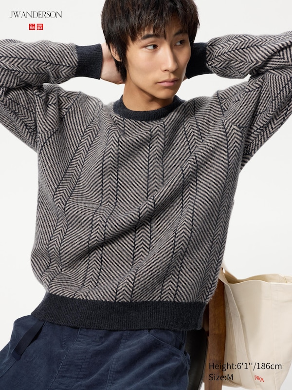 UNIQLO and JW ANDERSON 100% Lambswool Herringbone Crew Neck Sweater