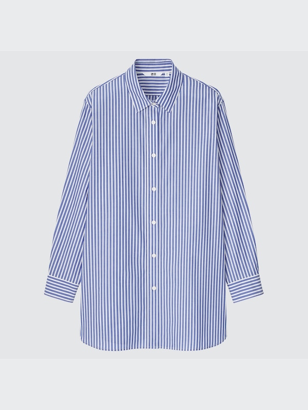 COTTON STRIPED LONG SLEEVE LONG SHIRT
