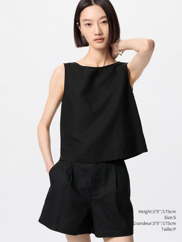 LINEN BLEND SLEEVELESS BLOUSE