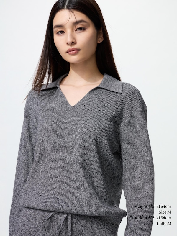 WASHABLE KNIT RIBBED POLO SWEATER