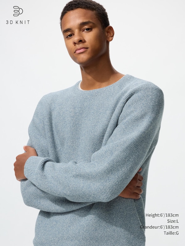 WASHABLE 3D KNIT CREW NECK SWEATER