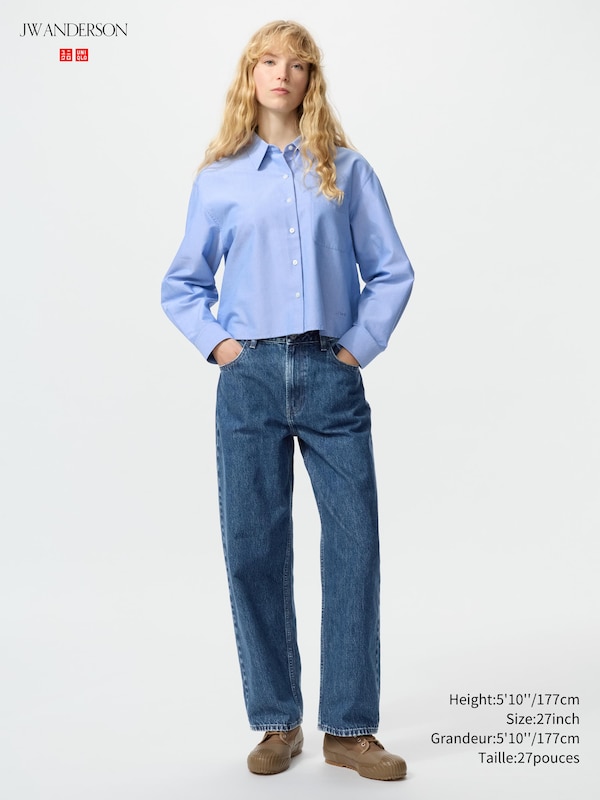 - Baggy silhouette is fitted at the waist, flares slightly from the hips, and tapers gently toward the hem.