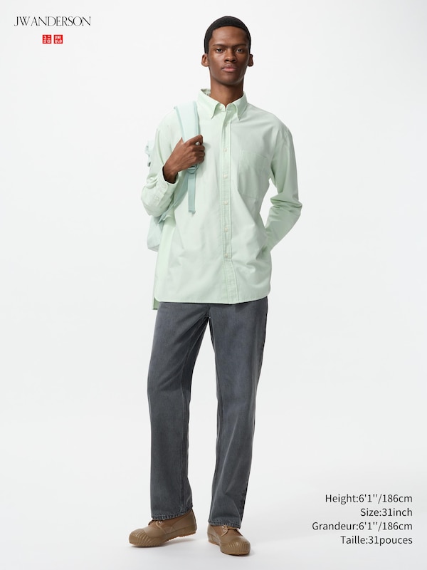 These Men’s Straight Jeans combine the ease of a timeless straight‑leg silhouette with the character of 100% cotton denim that’s pre‑washed for a subtly faded, casual look. Designed as part of the UNIQLO and JW ANDERSON collaboration, they offer a clean, versatile shape that works across seasons—easy to pair with oversized tees in warm weather or layered with mid‑weight fleece and outerwear in cooler months. The regular fit and soft feel create all‑day comfort, while signature designer details add a refined touch that sets them apart from everyday straight‑leg denim.