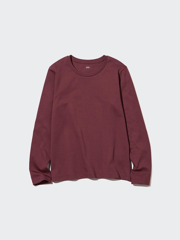 T-SHIRT EN COTON EXTENSIBLE COL ROND MANCHES LONGUES