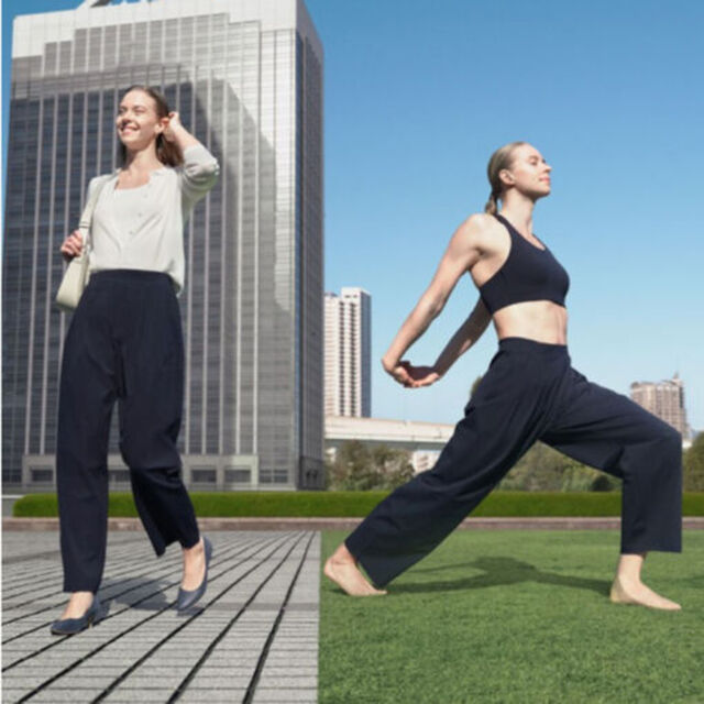 * 款号为475384的高弹力运动长裤(DRY-EX速干)、 475386的高弹力运动短裤(DRY-EX速干)、 474479的女装AIRism高弹力运动束脚裤采用360°螺旋式超弹科技。