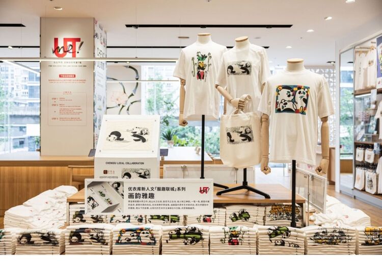优衣库(成都万象城城市旗舰店)与当地艺术家合作,推出了以熊猫、川菜等成都特色为灵感的多款UTme!定制系列商品。