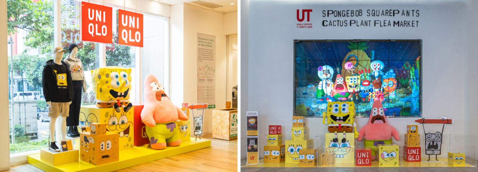 大型海绵宝宝和派大星玩偶华丽亮相于优衣库全球的48家门店中,并以欣喜万分的姿态热情迎接每位前来购物的顾客。诚邀您前往所在国家和地区的指定优衣库门店,与它们尽情合影留念。