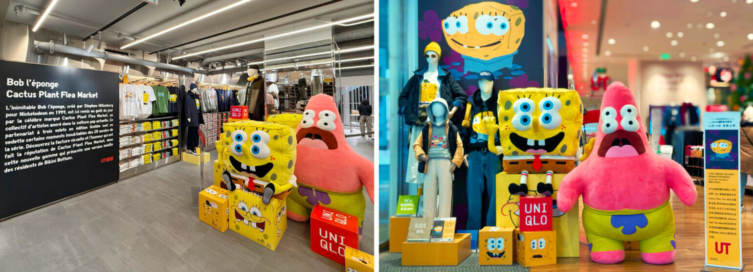 世界多地优衣库门店中惊现和真人差不多大的海绵宝宝和派大星玩偶!!