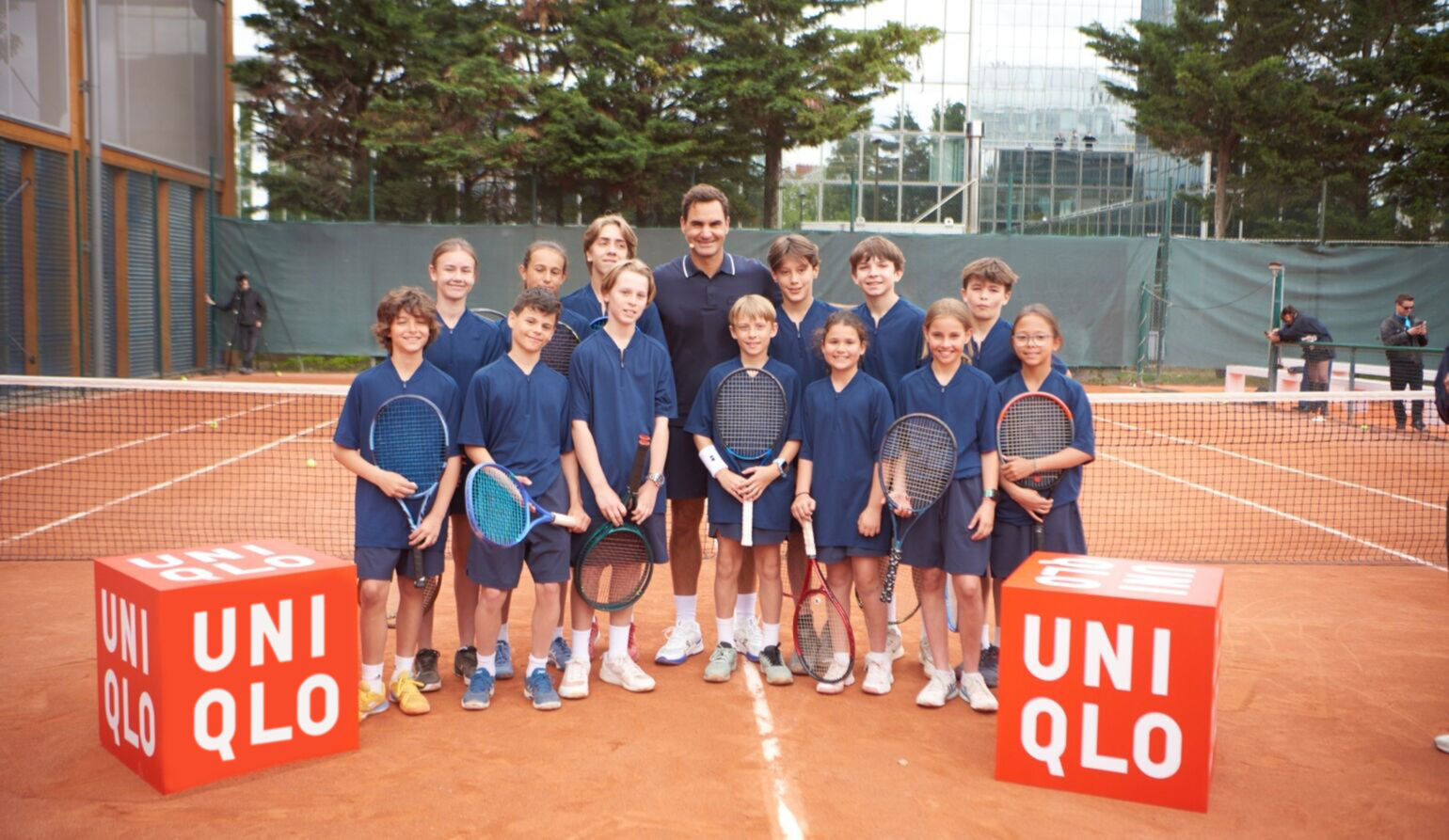 座谈会结束后,费德勒先生拿着球拍现身网球场。受邀的孩子和嘉宾们有机会与网球界传奇人物一起打网球,会场气氛热烈、充满活力。费德勒先生亲自到场演绎合作系列并在网球场上展现精湛球技,生动体现出本次合作系列的魅力。