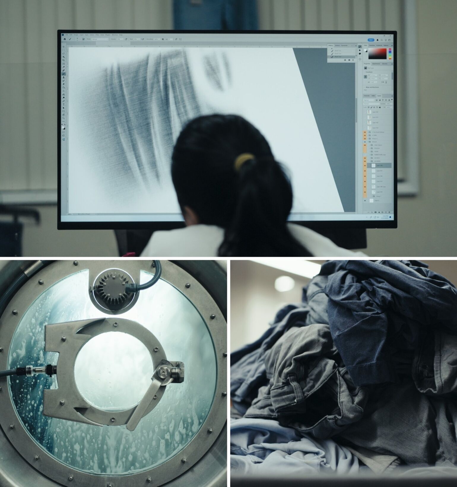 水洗、做旧等影响牛仔裤外观的加工工序,使用水和石头进行处理的传统方式,往往需要耗费大量的资源和人力。优衣库将传统工匠技艺与前沿技术相结合,实现了“加工技术的标准化”。由此,优衣库致力于以高效的方式,实现高品质且统一的加工效果。在不断变化的时代中,优衣库的牛仔裤加工专家们仍在持续探索,寻找加工牛仔裤特有外观的更多可能性。