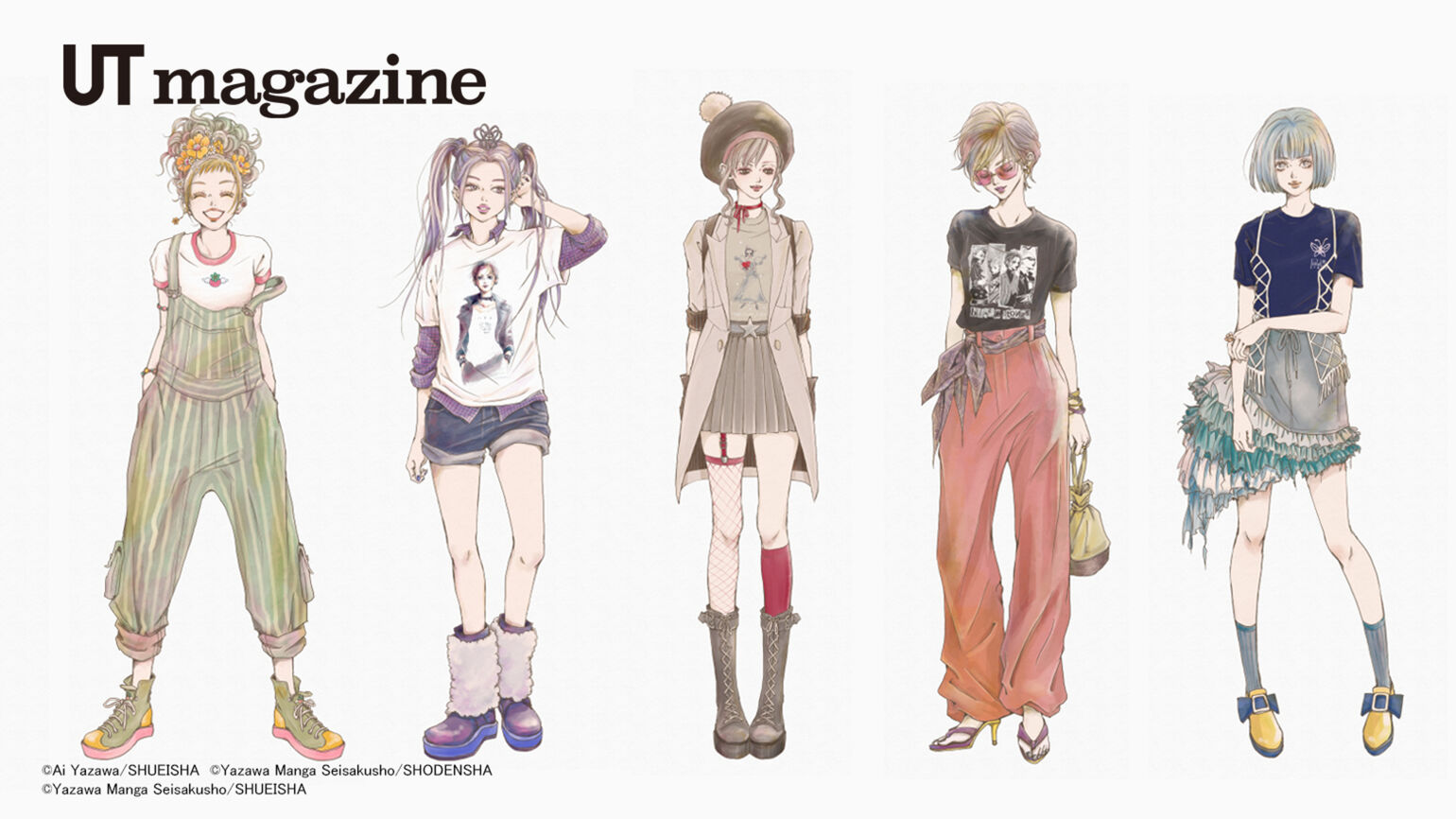 矢泽爱的漫画作品于2025年迎来问世40周年纪念,其作品不仅在日本广受喜爱,还被翻译成多种语言传播至全球多个国家,深受读者欢迎。本次的UT合作系列精选了她在1990至2000年间发表的经典之作。这些作品不仅深深打动了当时的读者,更因近年来千禧年复古风潮的兴起,再次吸引了新一代年轻女性的青睐。令人惊叹的是,这些创作于20多年前的作品至今仍然散发着历久弥新的魅力。尽管每部作品的故事背景各不相同,却都以充满个人魅力的角色为核心,融合时尚前卫的服装设计、别具一格的世界观,以及少女漫画中经典的恋爱主题,从多个角度探讨了“追逐梦想”、“活出自我”以及“幸福的形式”的丰富可能性。