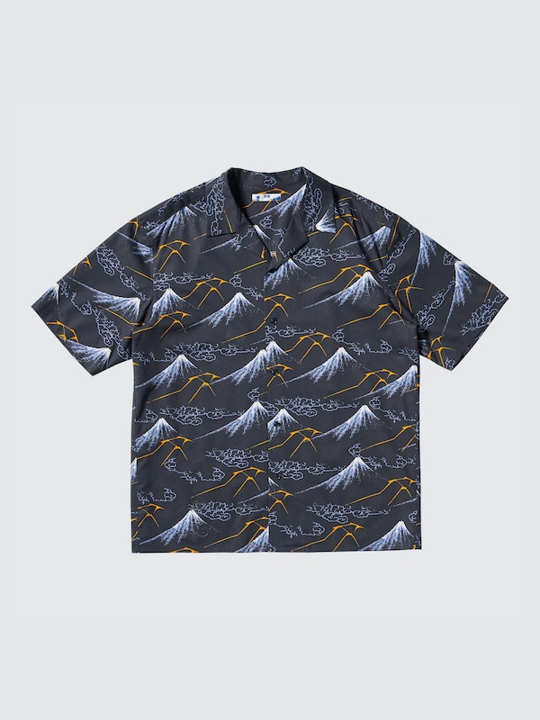 HOKUSAI BLUE Short Sleeved Shirt (Open Collar)