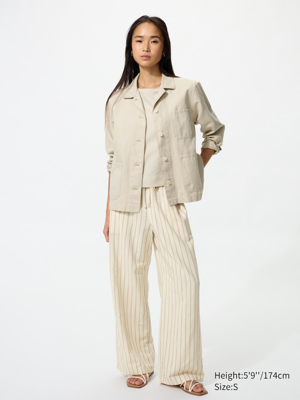 Linen Blend Easy Trousers (Striped)