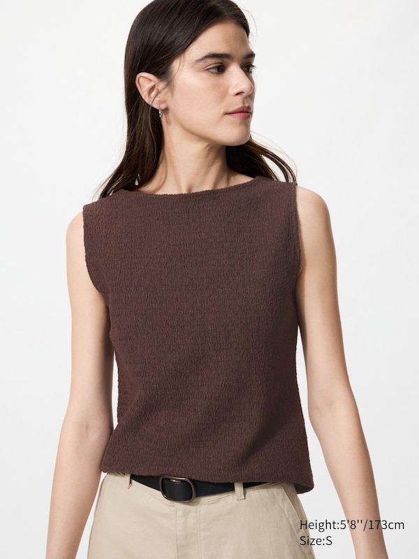Shirring Boat Neck T-Shirt (Sleeveless)