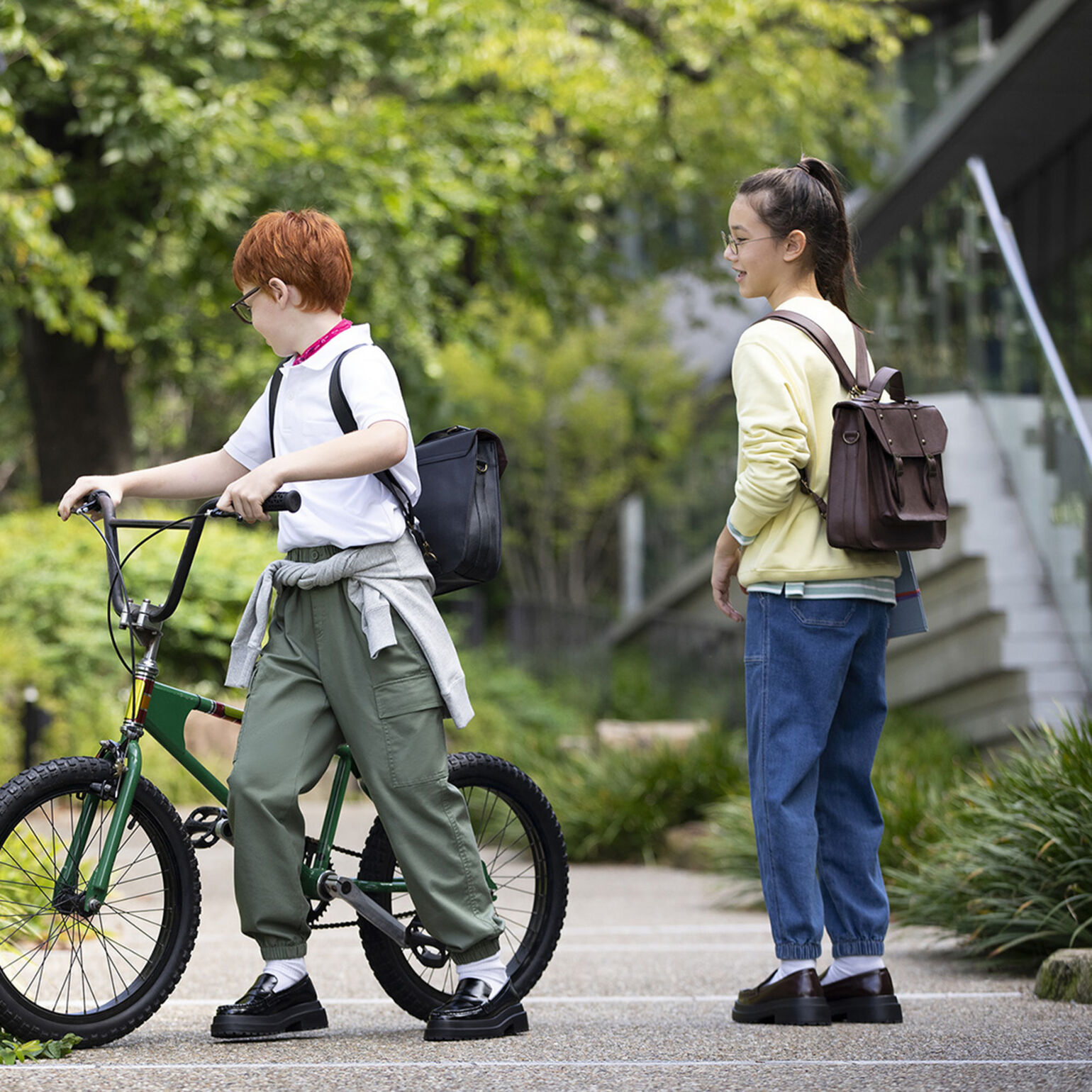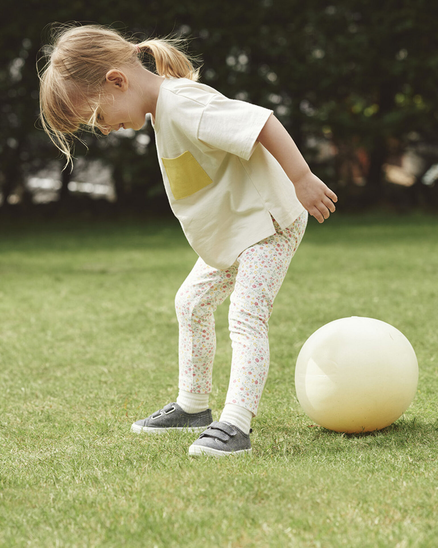Let little ones explore their environment in functional, elastic leggings and soft T-shirts for spring.