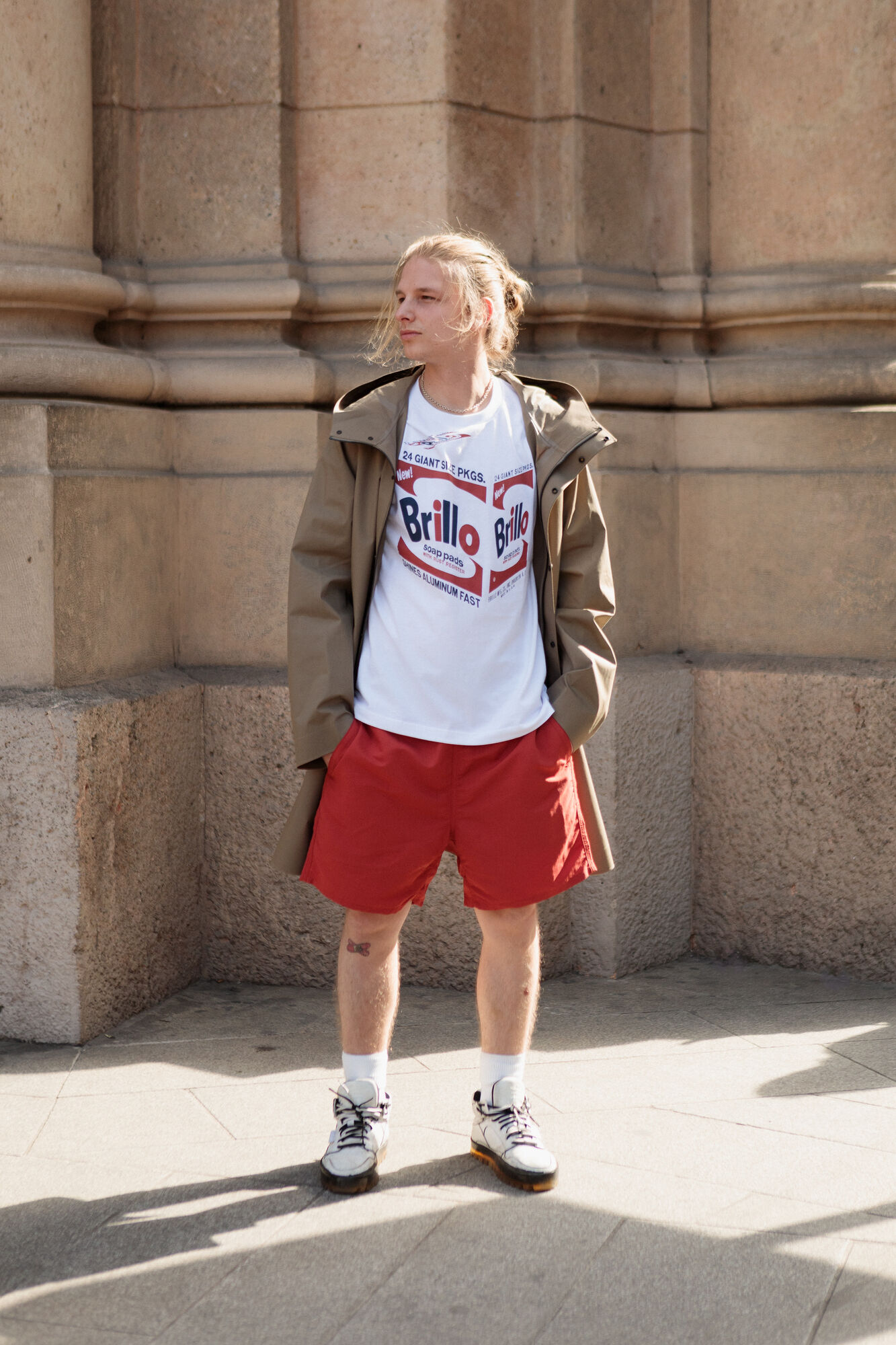 Shop the look: UT Archive Graphic T-shirt, BLOCKTECH Coat, and Ultra Stretch DRY-EX Shorts