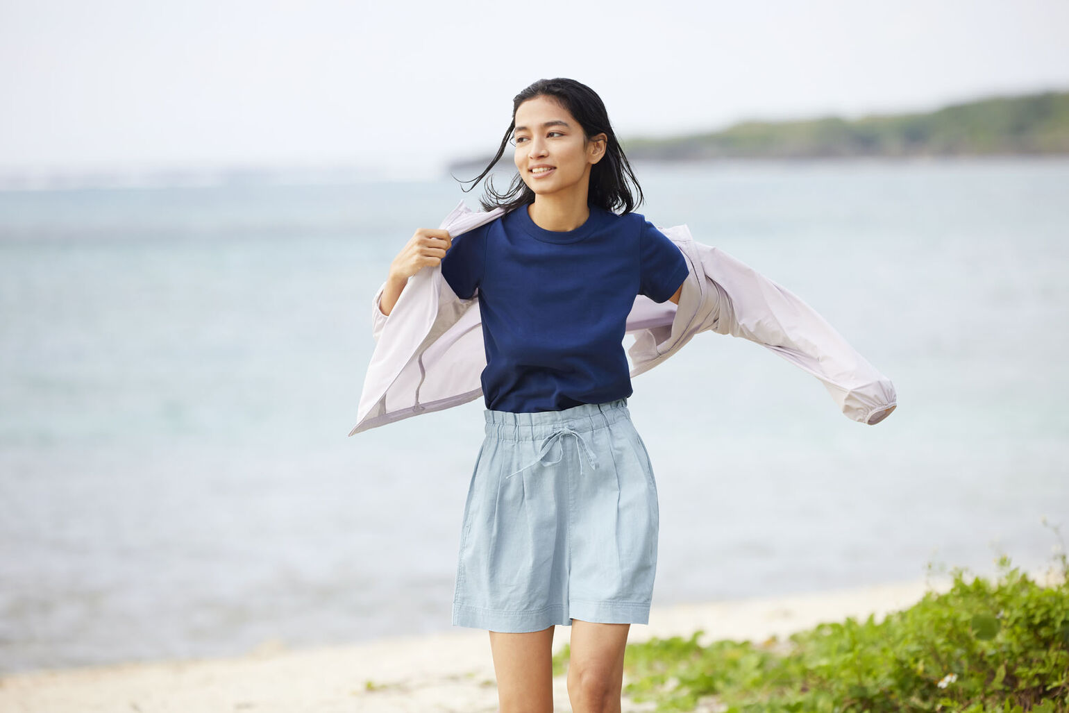 Shop the look Linen Cotton Shorts, Uniqlo U Crew Neck T-Shirt, and UV Protection Pocketable Parka