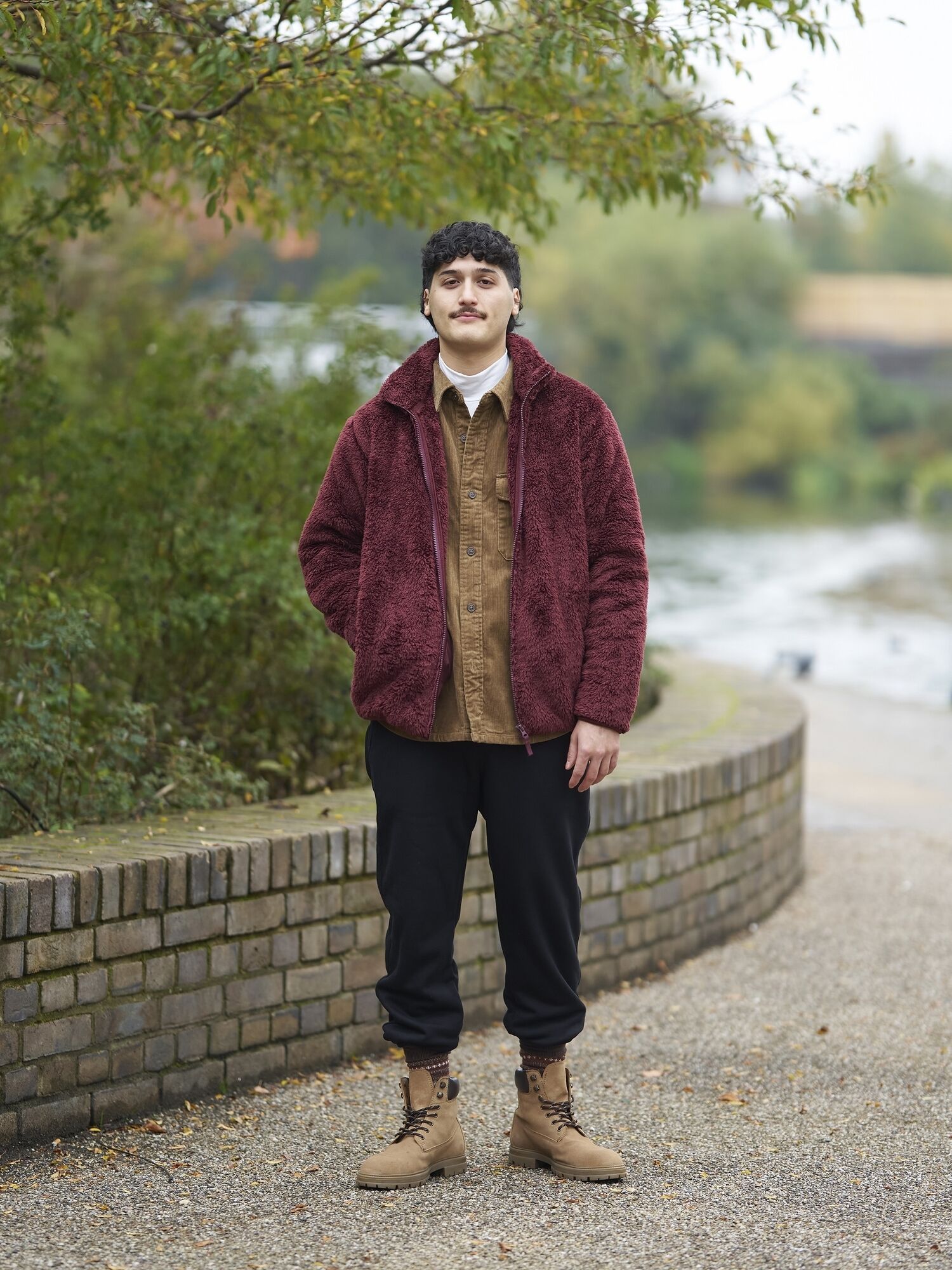 Model wears Fluffy Fleece Zipped Jacket, Corduroy Overshirt and HEATTECH Pile Lined Joggers.
