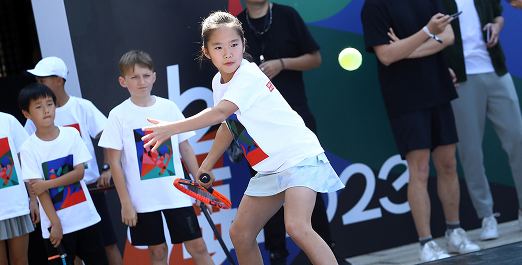 Talented tennis juniors from Juss Sports got one-on-one attention from Roger, with coaching help from Chinese tennis great Wu Di. The court and its surroundings, designed by next generation artist Cheng Peng, captured Shanghai’s palpable energy and passion for tennis. Her designs were a perfect backdrop for Roger, the young athletes, and many excited onlookers.