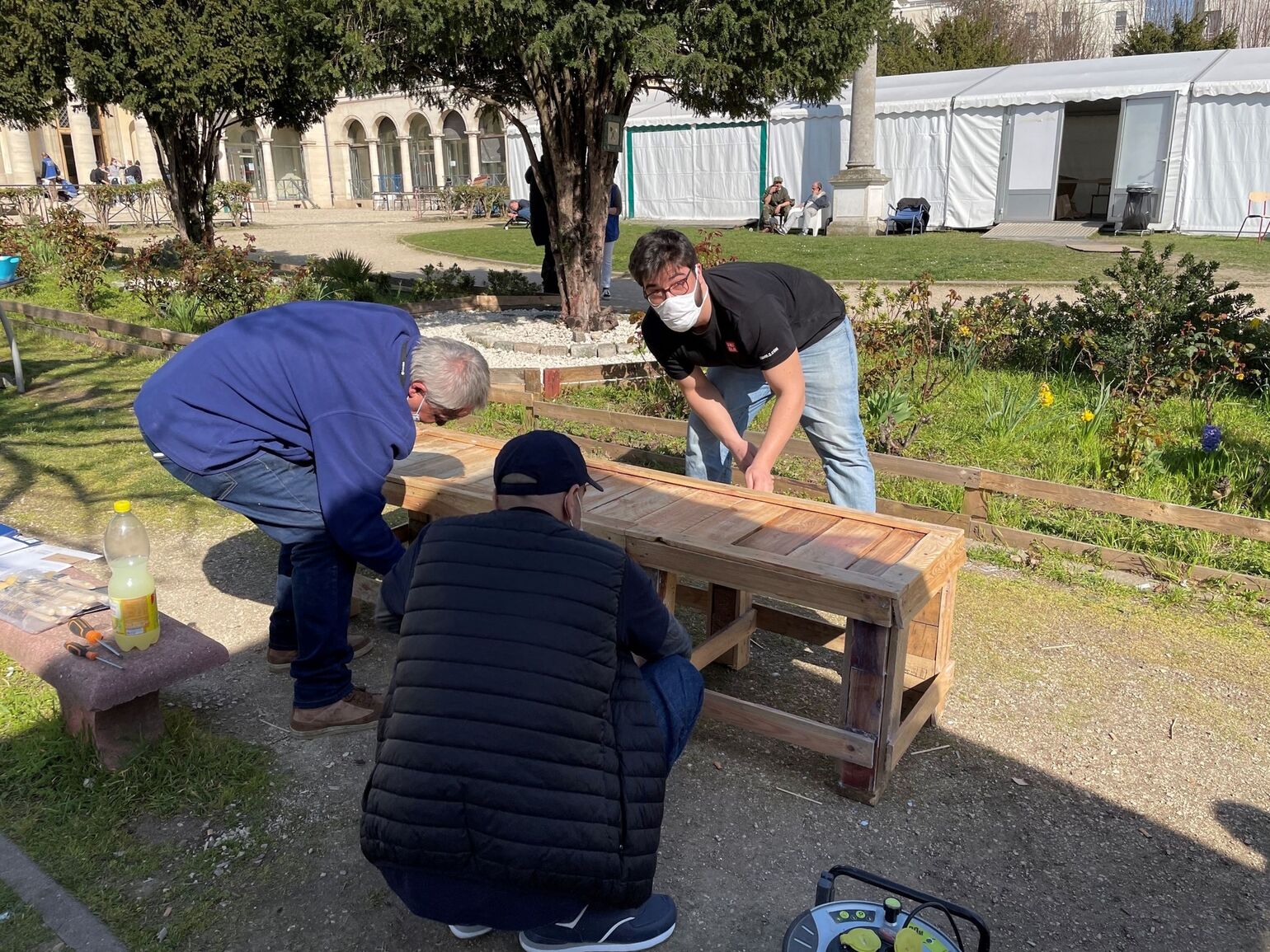 Lieu d’implantation historique du Samusocial de Paris, l’Hospice Saint-Michel accueille plus de cent personnes isolées par jour. Notre équipe de volontaires s’est mise à l’œuvre pour poncer, peindre et planter des fleurs dans les jardins. Nous avons aussi profité de cette occasion pour faire un don de 50 sacs surprises (contenant tote bags, sweats, chaussettes et masques AIRism) et de 6 000 masques AIRism.