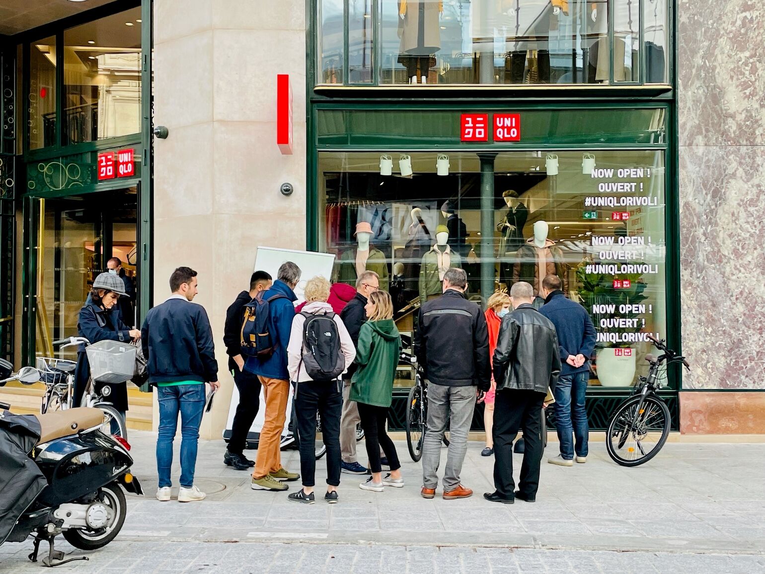 Des vélos se sont fait une place devant le magasin UNIQLO Rivoli, le 29 septembre. À leurs côtés, un signe propose : « Essayez nos vélos ! ». Cela fait partie d’une initiative ayant comme but de sensibiliser nos employés, mais aussi nos clients, à l’écomobilité – ainsi que de participer à la création d’une communauté de cyclistes à Paris. Ladite initiative prend tout son sens, car la rue de Rivoli est désormais réservée uniquement aux piétons et aux vélos. Nous avons donc voulu faire découvrir les avantages de cette pratique.